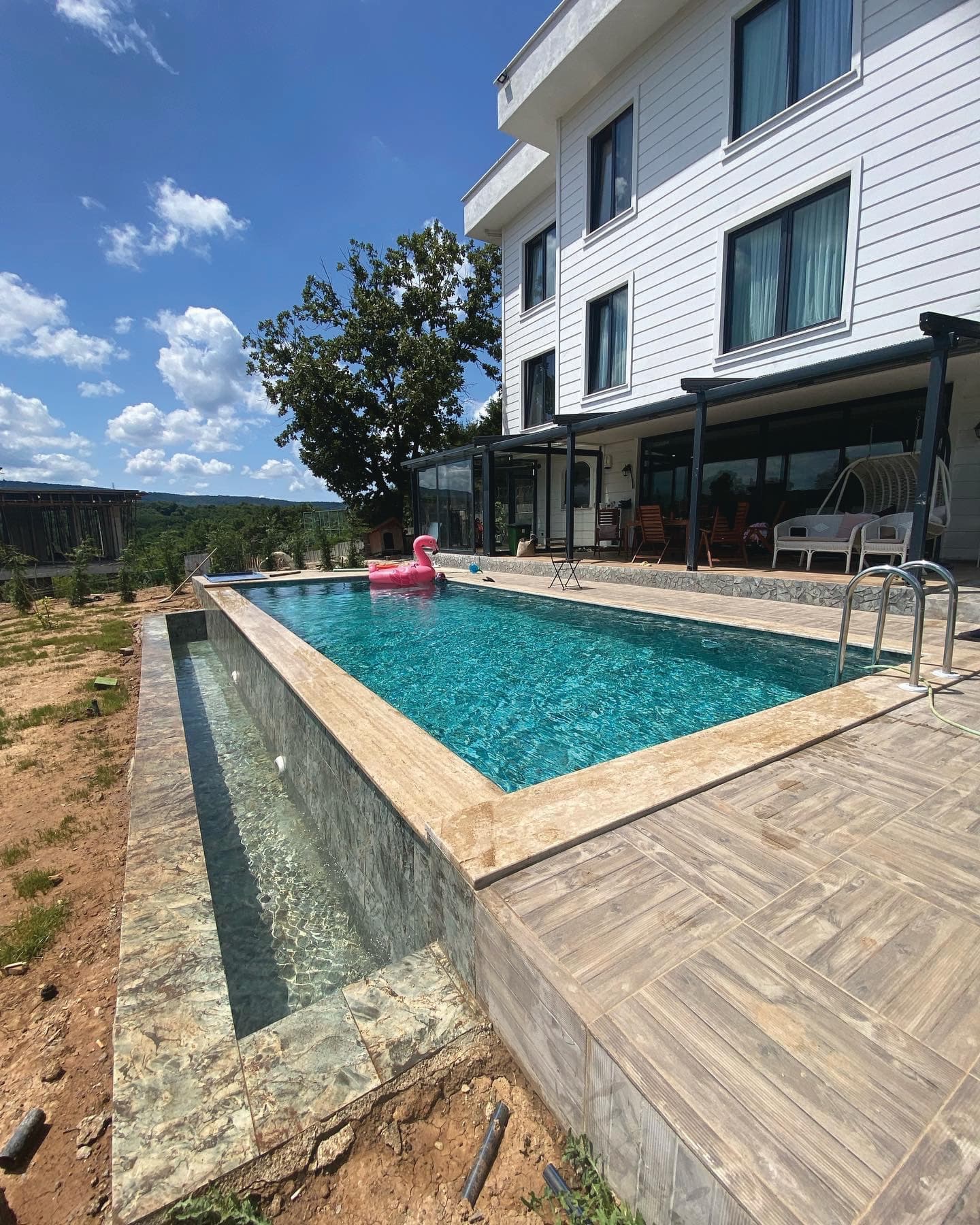 Infinity havuz, suyun ufka doğru sonsuzmuş gibi aktığı izlenimini veren, kenarı taşma efektiyle tasarlanmış özel bir havuz türüdür. Sınırsız görüntü efekti ile lüks ve modern havuz deneyimi sunar.